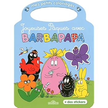 Un adorable coloriage de Pâques à emporter partout grâce à sa poignée. En cadeau, sont offerts des stickers de la famille Barbapapa !